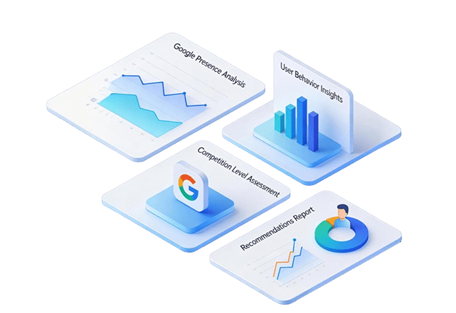 Zanim podejmiemy działania, weryfikujemy, czy obecność w Google realnie może przełożyć się na rozwój Twojego biznesu. Sprawdzamy zachowania użytkowników w wyszukiwarce, poziom konkurencji oraz aktualny stan i możliwości strony internetowej.